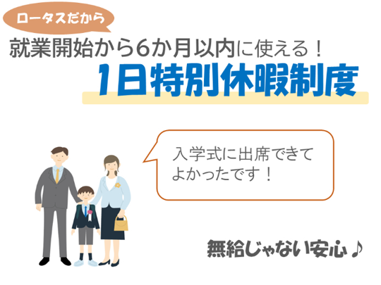 | ※職場の環境 | ・20代活躍中 ・30代活躍中 ・40代活躍中 ・50代活躍中 ・ロータススタッフさん活躍中 ・女性多め ・禁煙、分煙 ・服装自由 ・自転車通勤OK ・お弁当販売有 |