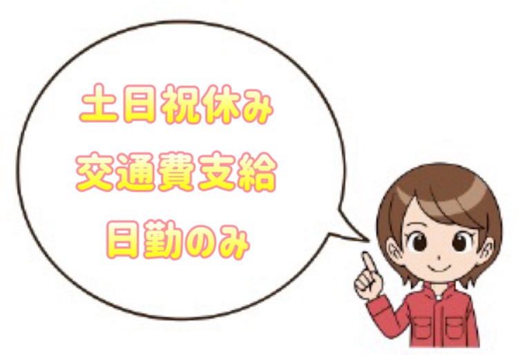 | 特徴 | 高時給 高収入 交通費支給 月火水木金 土日祝日休み バイク通勤OK ルーティンワーク 駅前 研修充実 キレイな食堂 女性が多い職場 制服 友達 仲間 大手企業 経験者優遇 未経験OK 20代活躍中 30代活躍中 40代活躍中 |