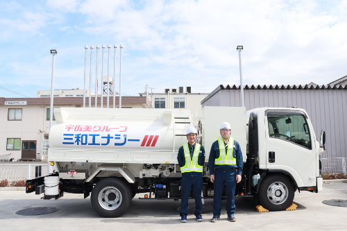 | <他-4> | 三和エナジーは、国内トップシェアを誇る燃料配送のリーディングカンパニーです。 建設現場の重機への給油から、国際的なビッグイベントや大阪・関西万博の燃料供給まで、日本の産業を足元から支えています。 全国に800名の社員と650台以上の自社車両、3万KL超の燃料備蓄を擁する、業界屈指のネットワークが私たちの強みです。 2017年より宇佐美グループの一員となり、経営基盤は極めて安定。 災害時に病院や通信、データセンターといったライフラインを守る「大規模災害エネルギーサポート事業(EESS)」や、 自社プラントによるバイオ燃料の製造・販売など、脱炭素社会を見据えた次世代エネルギー事業にも注力しています。 事業拡大につき、共に成長できる仲間を募集します! |